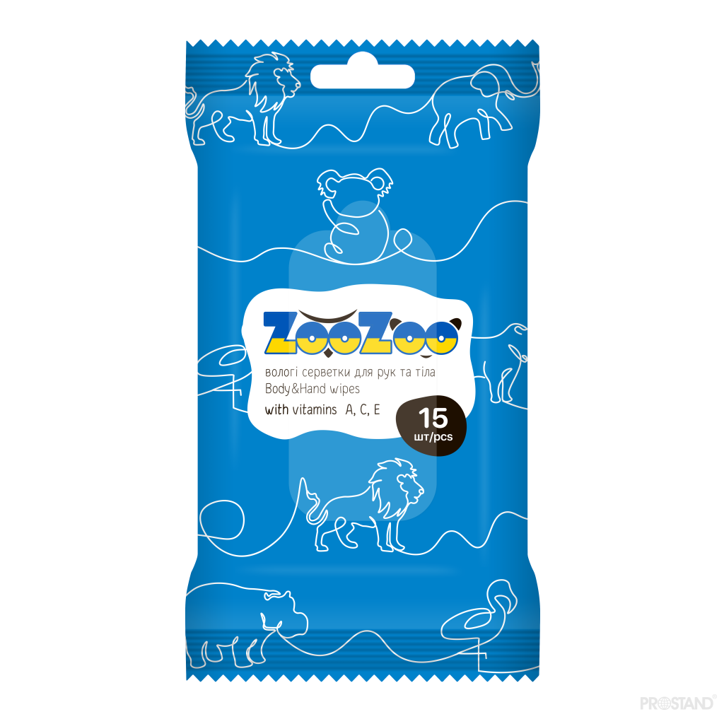 ZooZoo Салфетки влажные для рук и тела с витаминами A,C,E 15шт /36